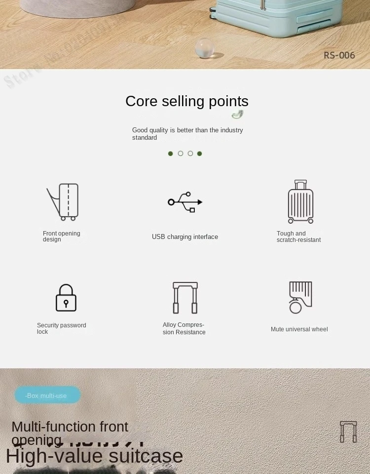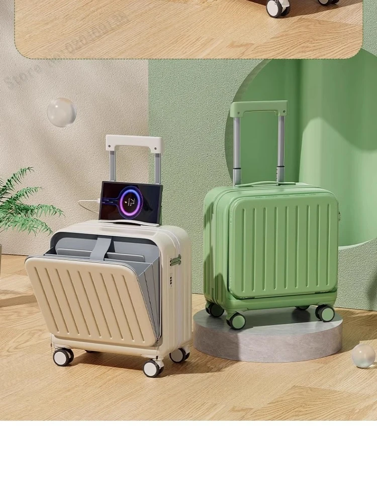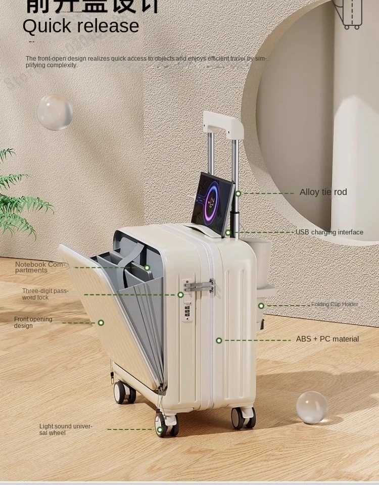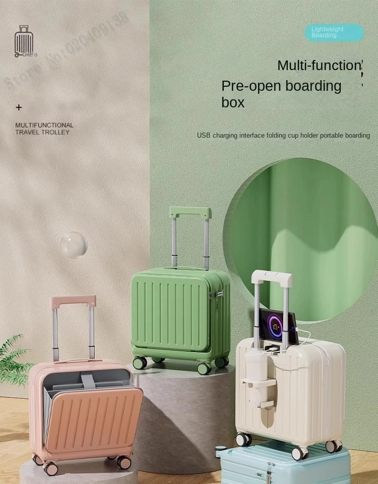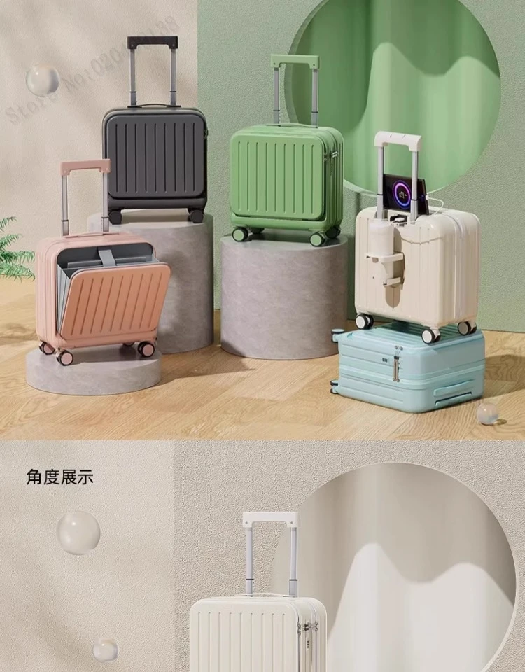 Pi1380 KO-KU Carry-on Suitcase Front Opening 18 Inch Boarding Box Cup Holder USB Interface Trolley Case Password Luggage 20 inch
