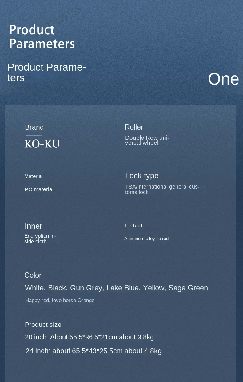 Pi1381 KO-KU Wide Trolley Aluminium Frame Suitcase Silent Universal Wheel Luggage 24 inch Carry on Suitcase 20 Inch Boarding Box