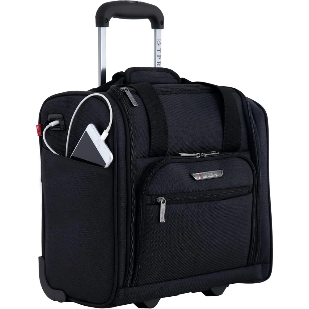 Smart Under Seat Carry-On Luggage with USB Charging Port, Black, Underseater 15-Inch