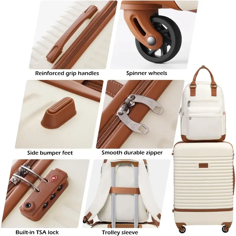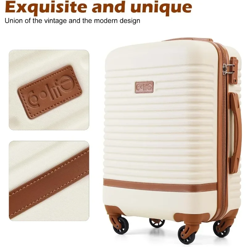 Suitcase Set 3 Piece Luggage Set Carry On Travel Luggage Lock Spinner Wheels Hardshell Lightweight Luggage Set White