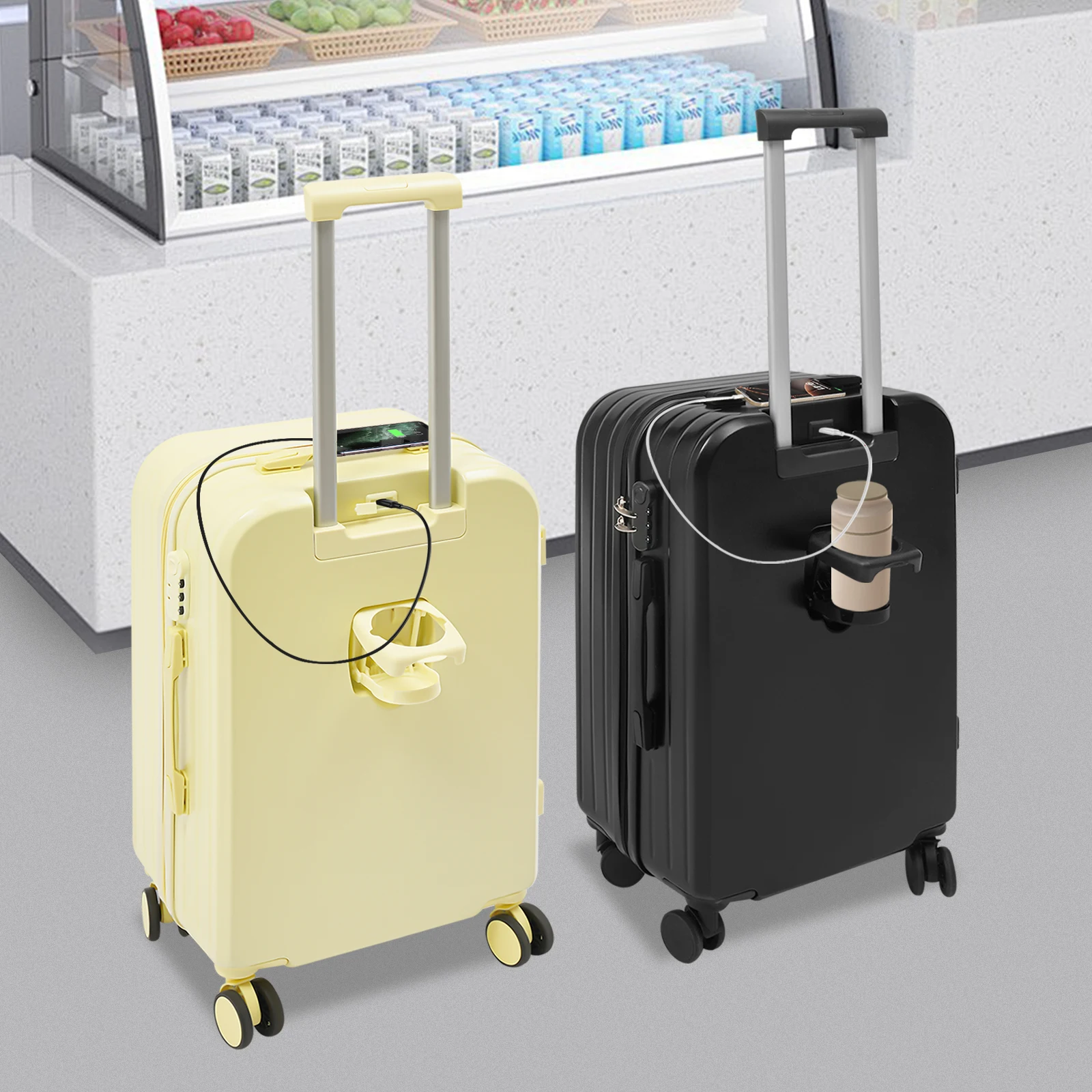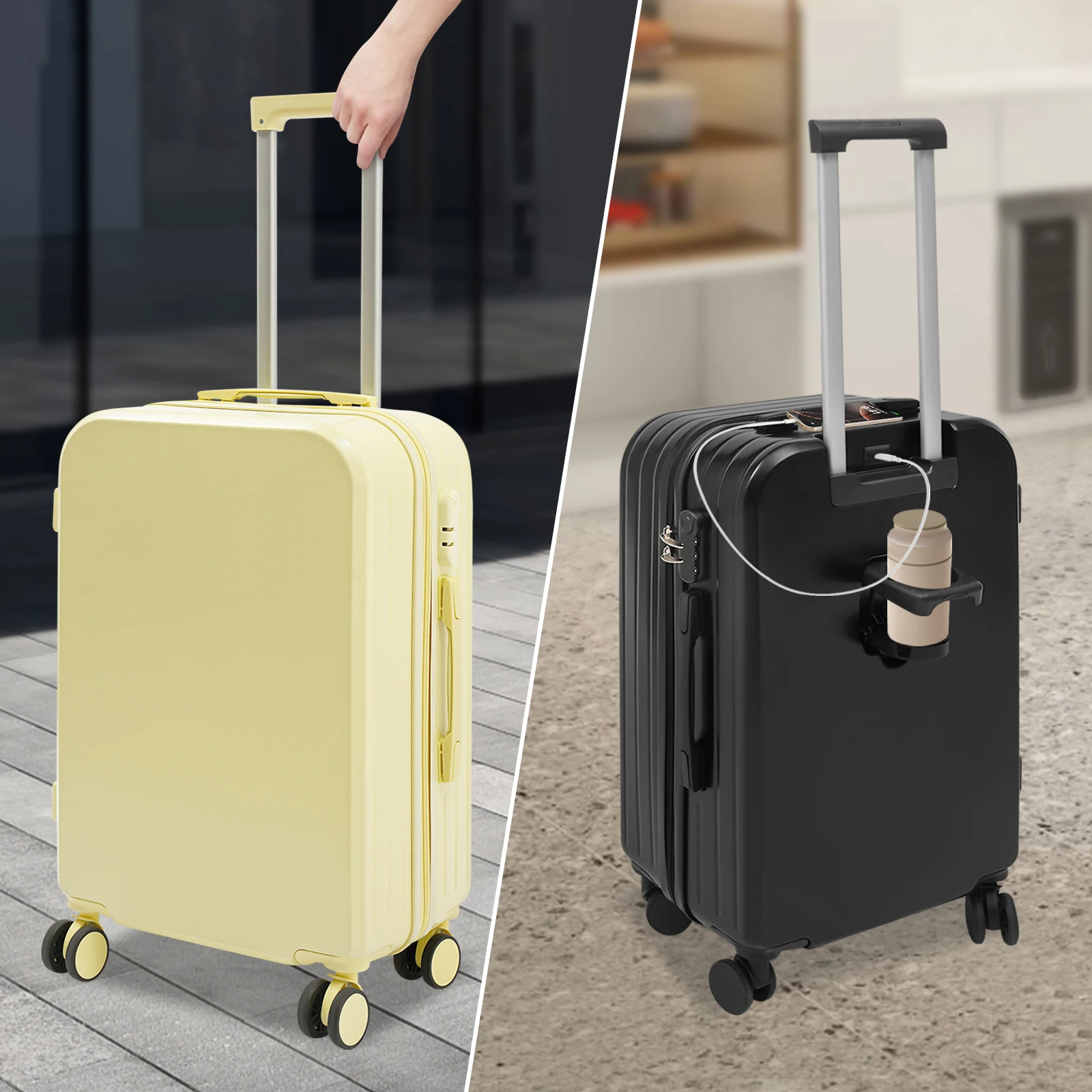 TH009 24 Inch Suitcase, High Capacity Luggage Trolley Case, Universal Wheels Durable PVC, Travel Rolling Hand Luggage with Cup Holder