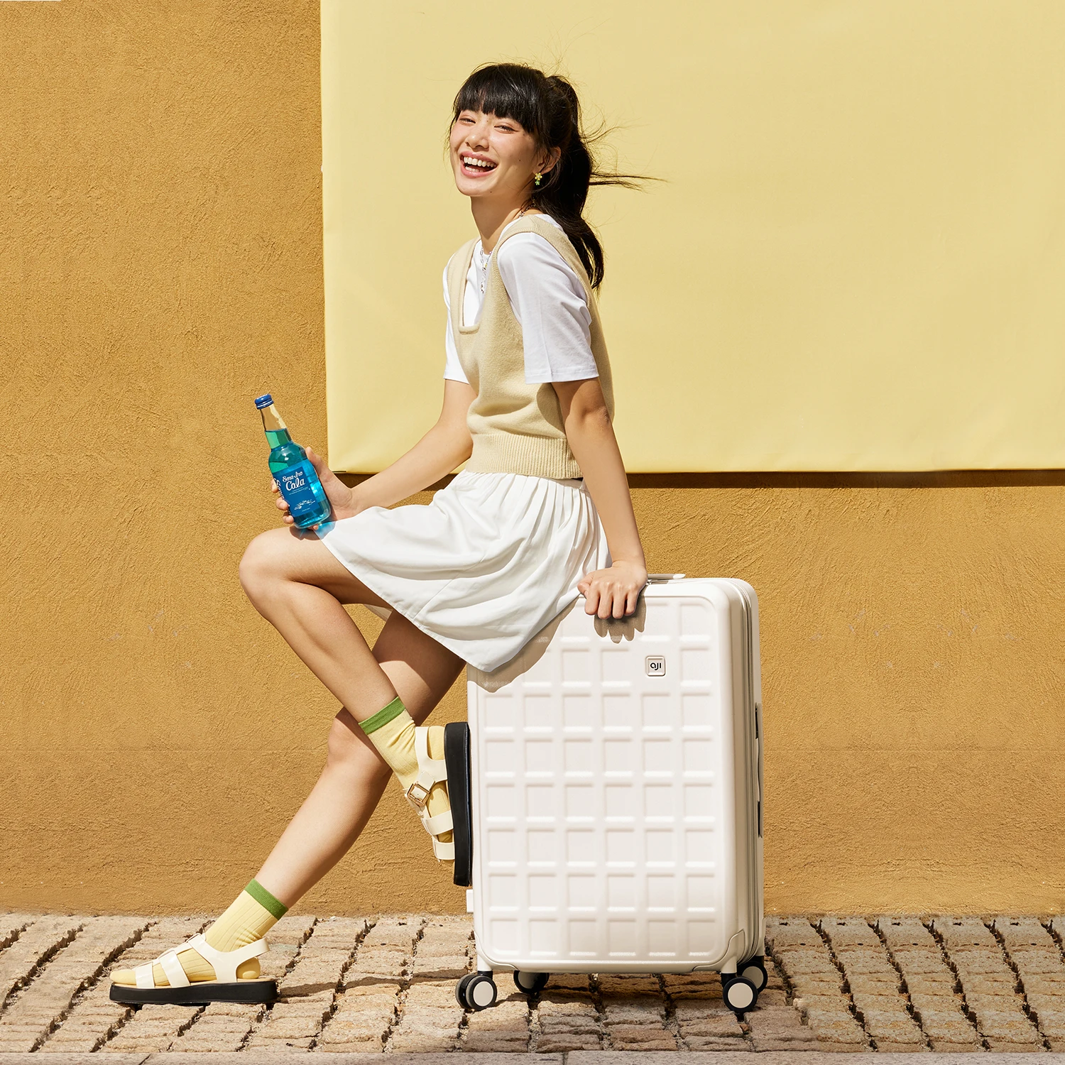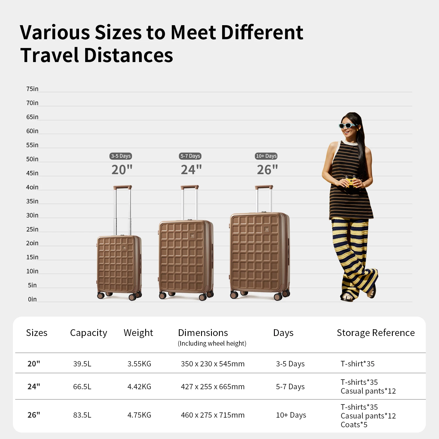 TH016 AJI Suitcases On Wheels Waffle-Pattern Men Carry-On Luggage Women Travel Trolley Case 20/24/26 Inch Suitcase Travel Luggage