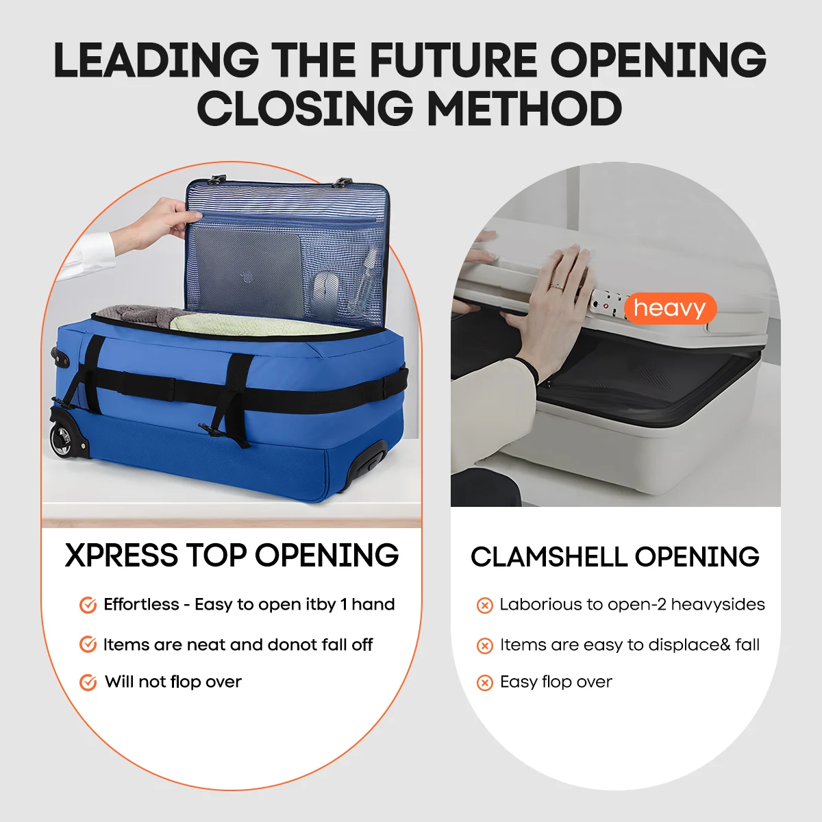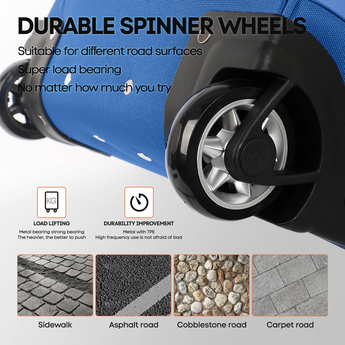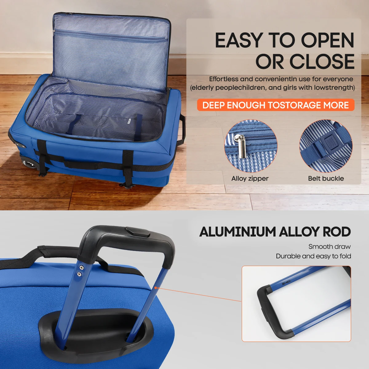 - 【Bottom Front Feet】The front bottom features support feet to maintain balance, ensuring the luggage stands upright even when fully packed.