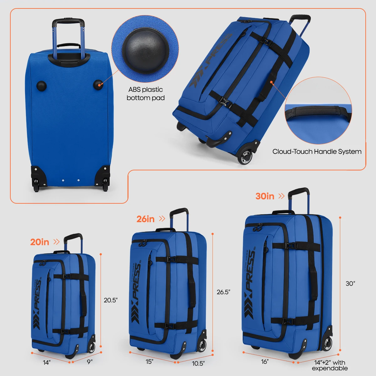 TH035 Luggage Sets 3 Piece Expandable Wheeled Bag Rolling Duffle Bag Waterproof Luggage Trolley Bags 20″ 26″ 30″ Carry on Luggage