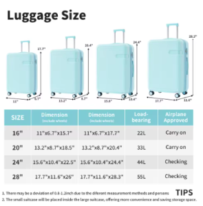 TH054 Luggage Set with Compression Packing Cubes for Suitcase Expanable Spinner Wheels Lightweight Suitcase with TSA Lock