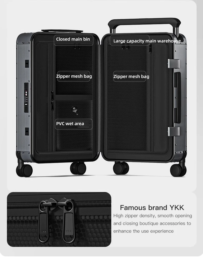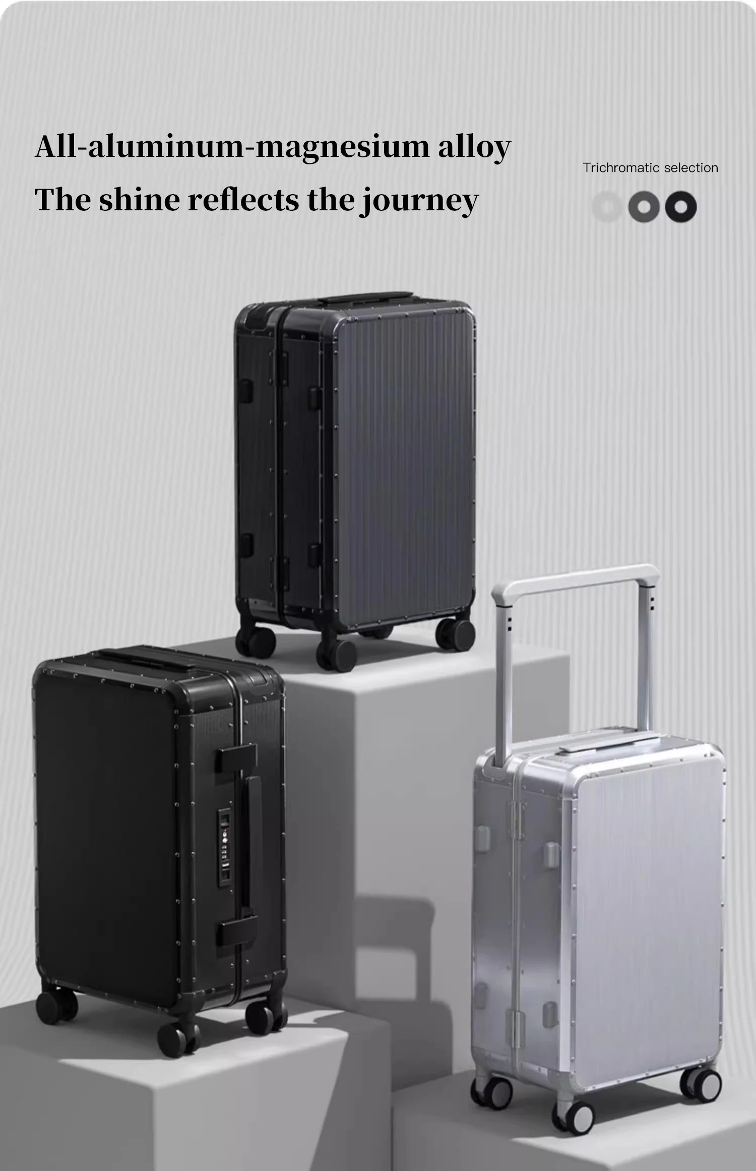 TH058 all-aluminum luggage suitcase. Three colors to choose from. It’s carry-on compliant. Suitable for both men and women. It