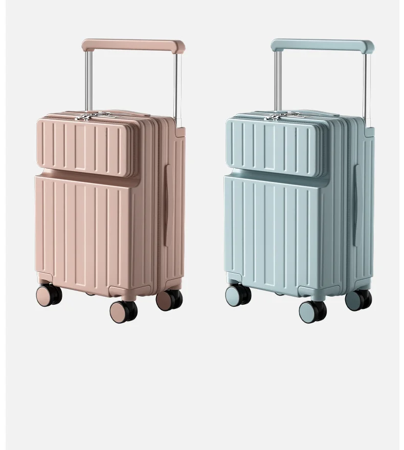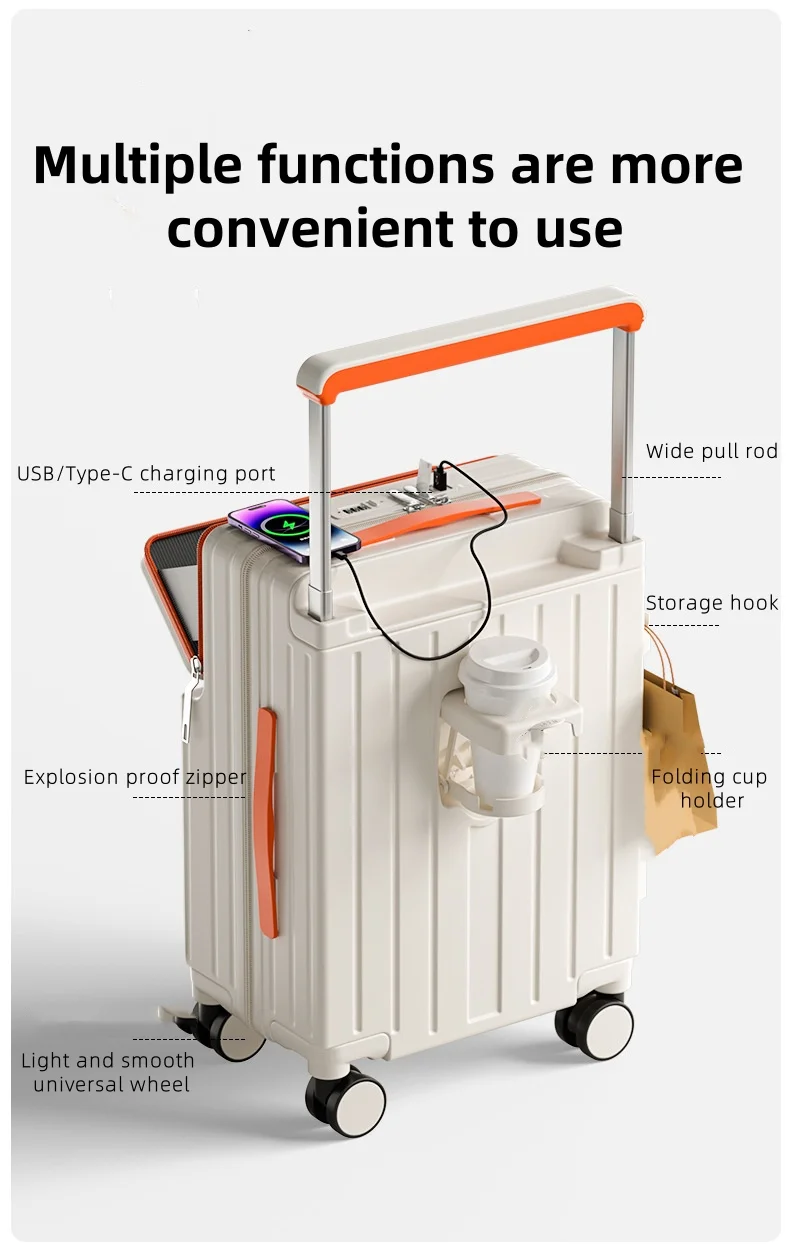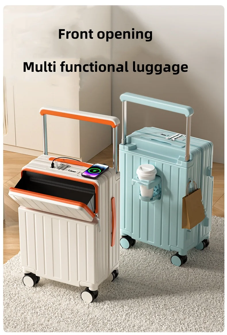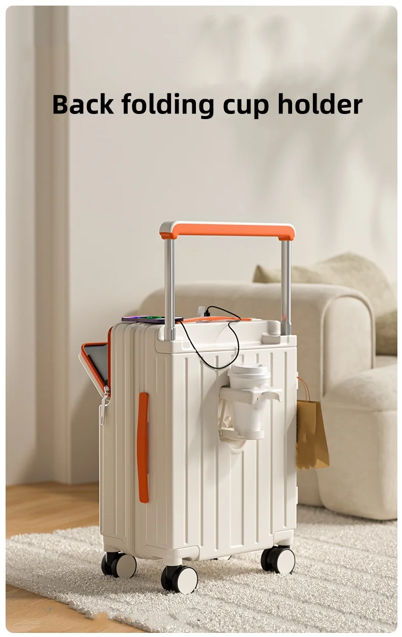 TH070 New 20 inch multifunctional front opening cup holder wide pull rod luggage compartment boarding case password travel suitcase