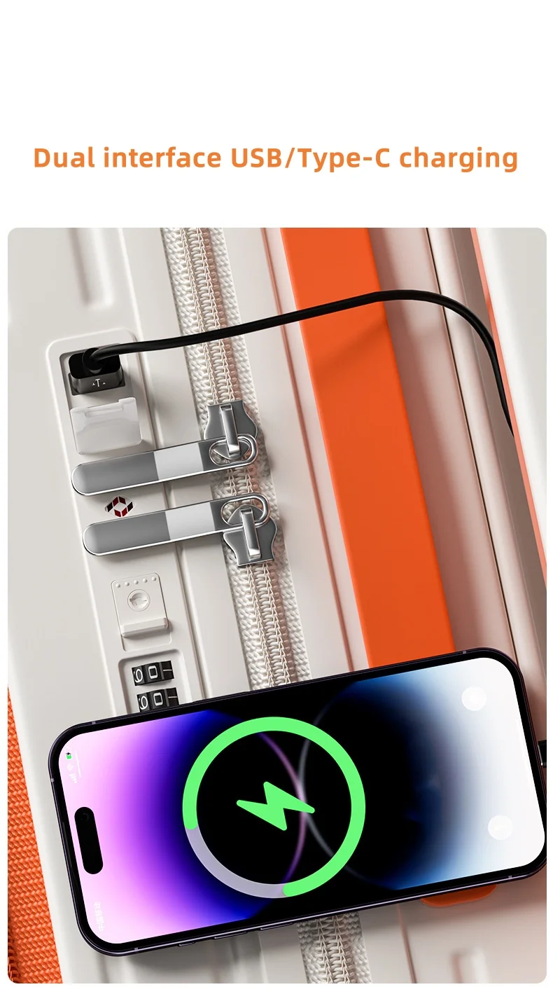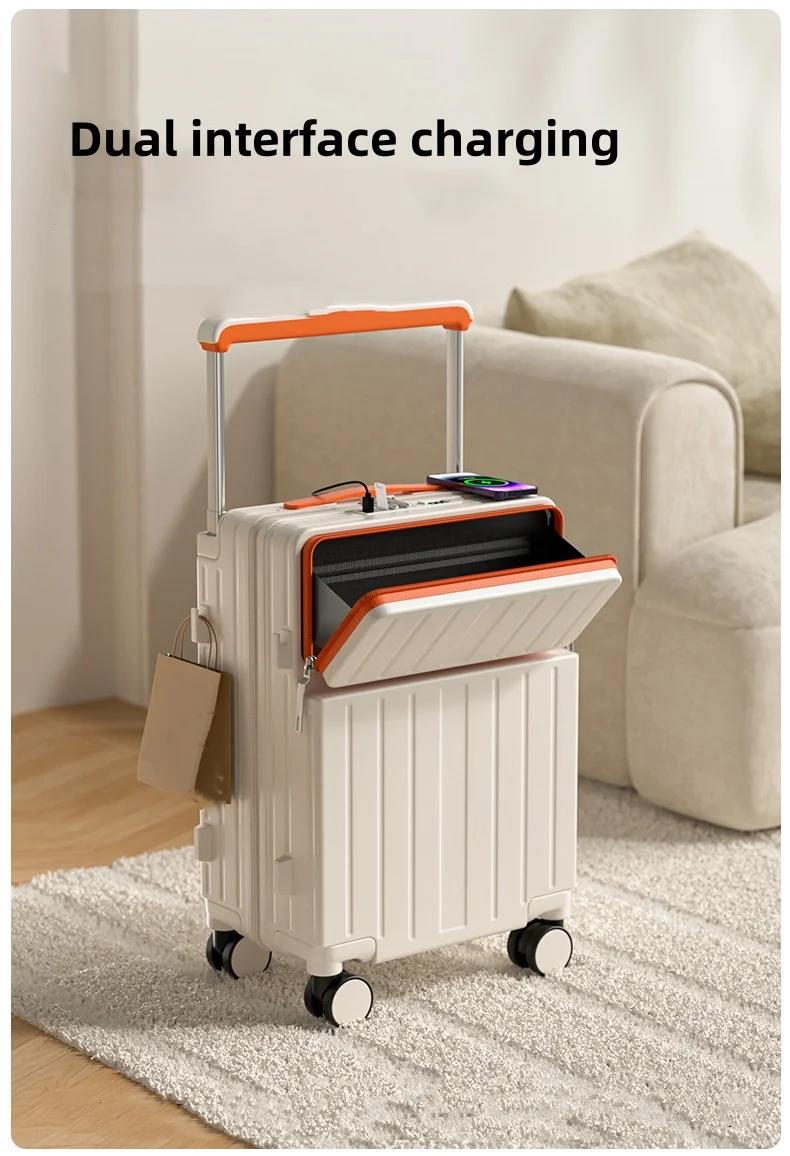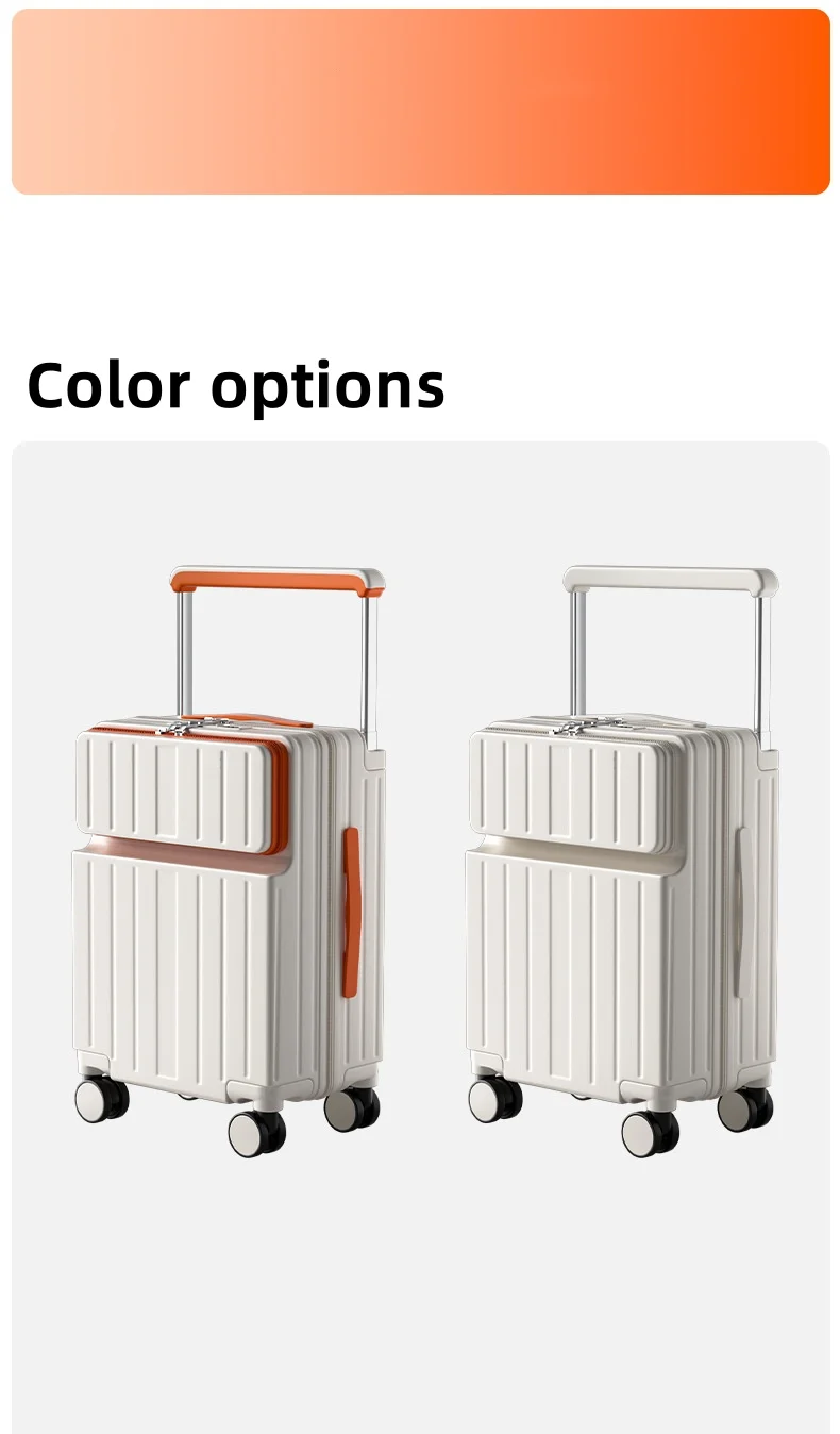 TH070 New 20 inch multifunctional front opening cup holder wide pull rod luggage compartment boarding case password travel suitcase