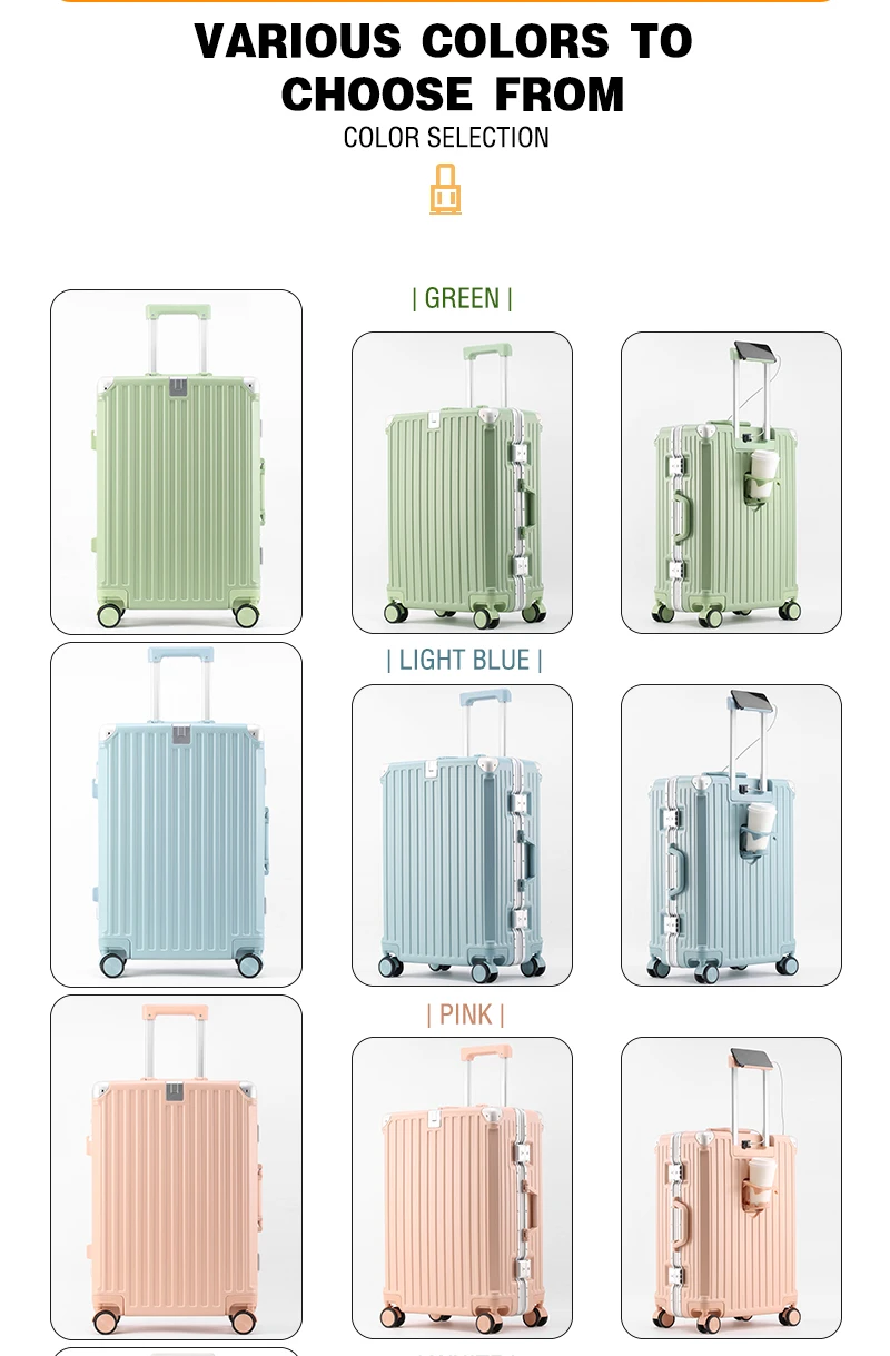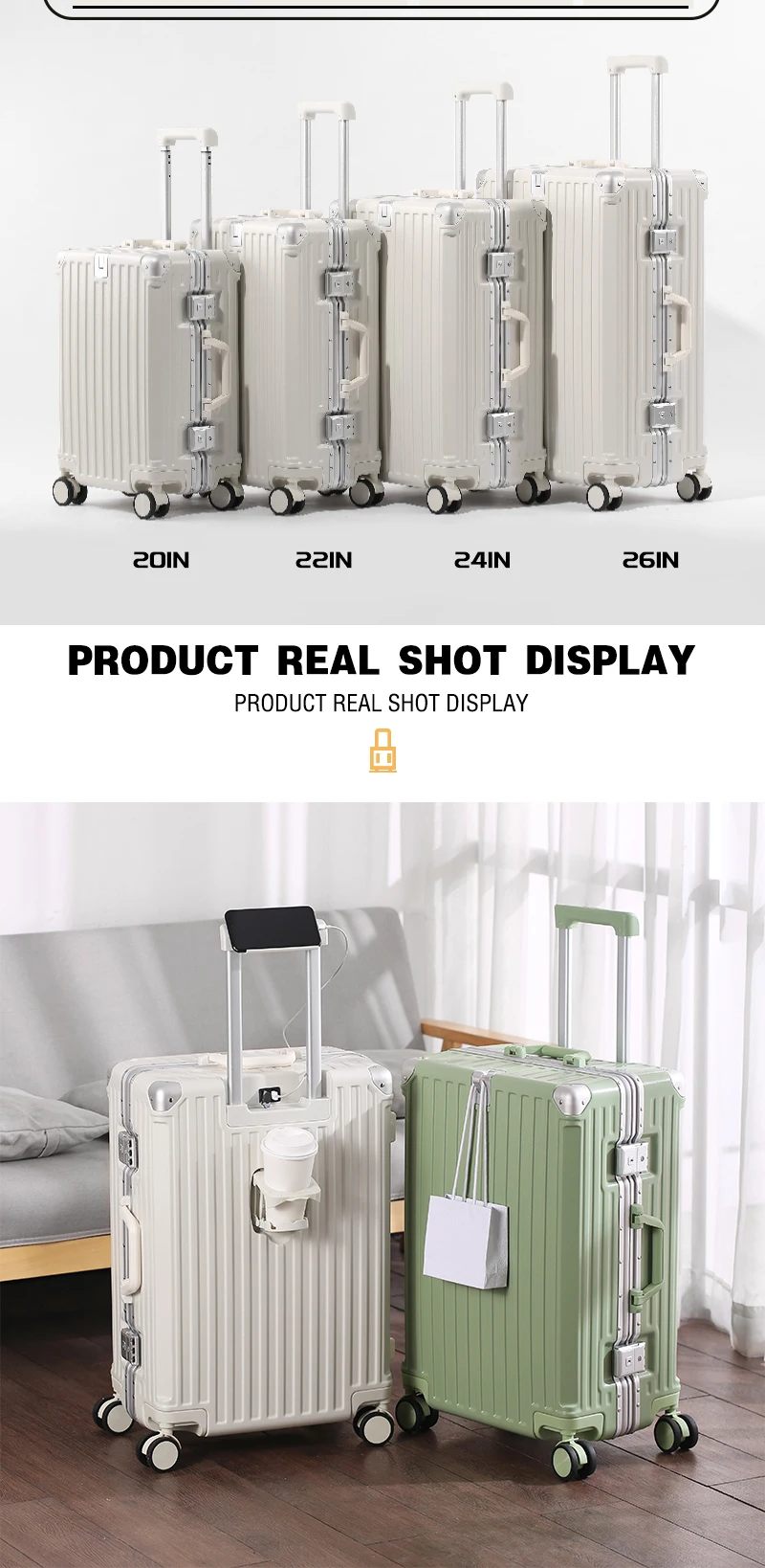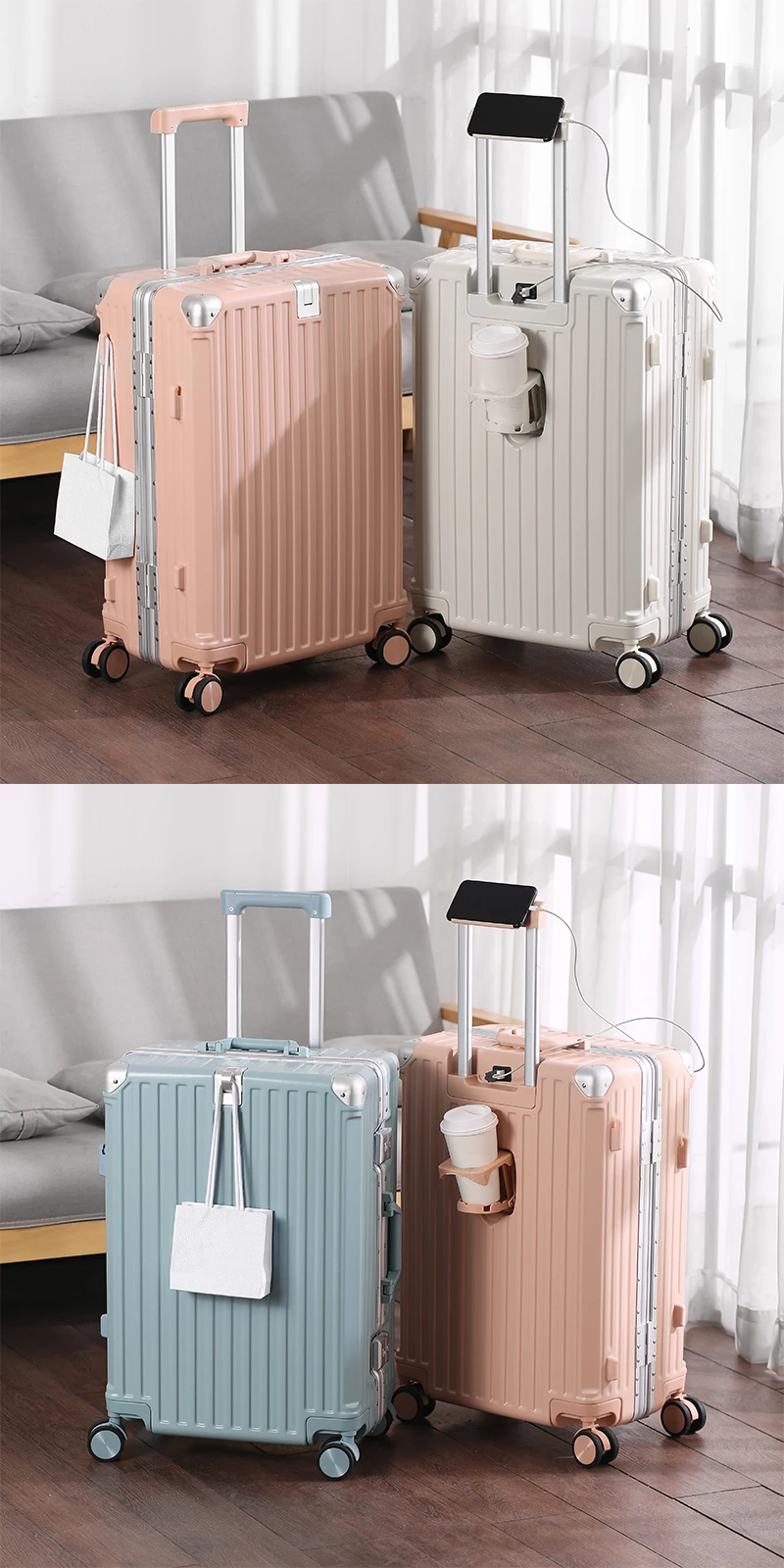 TH072 Aluminum alloy frame suitcase multi-functional trolley case cup holder suitcase password case mobile phone stand 20″ 22″ 24″ 26″