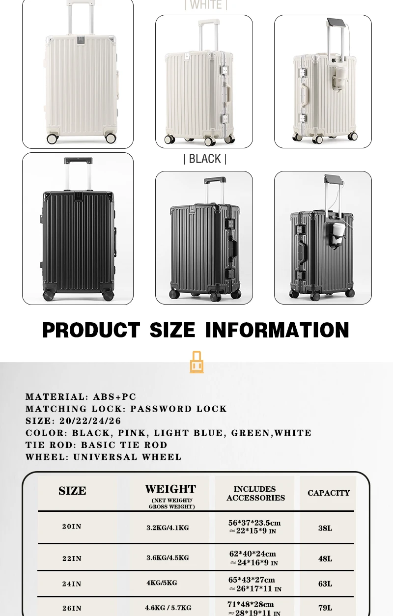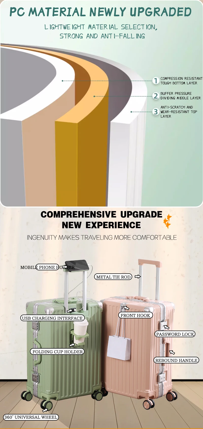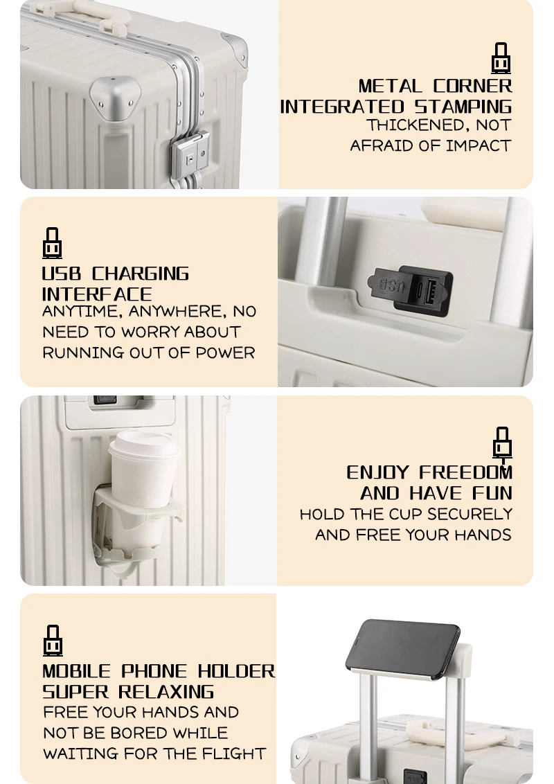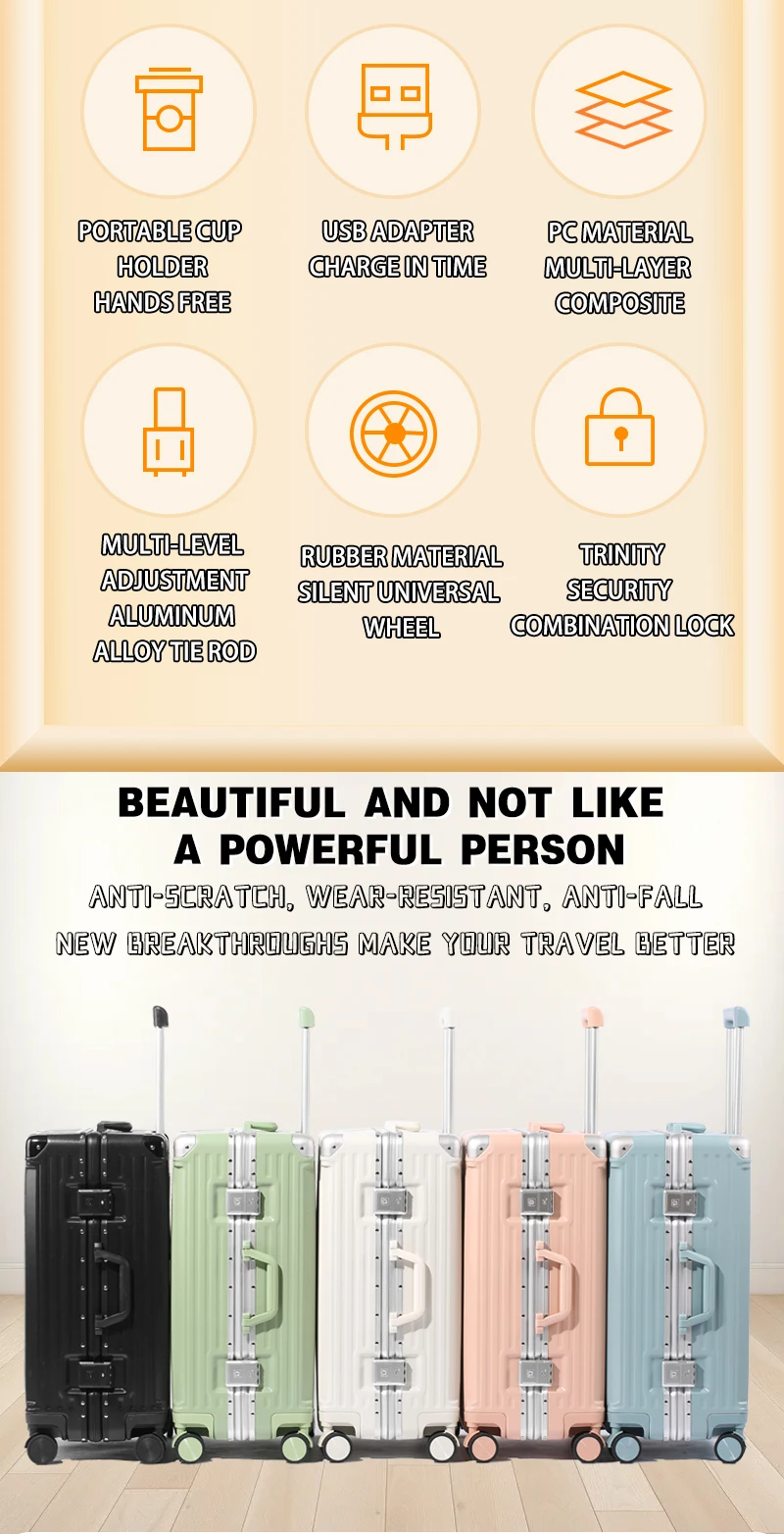 TH072 Aluminum alloy frame suitcase multi-functional trolley case cup holder suitcase password case mobile phone stand 20″ 22″ 24″ 26″