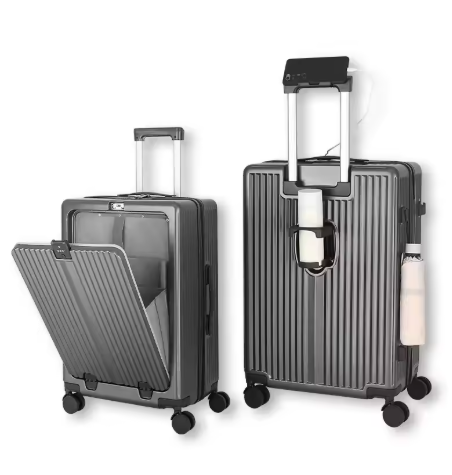 TH163 20/22/24/26‘’ Front Opening Suitcase Travel Rolling Luggage Aluminum Alloy Trolley PC Case with Spinner Wheel USB charging Plug