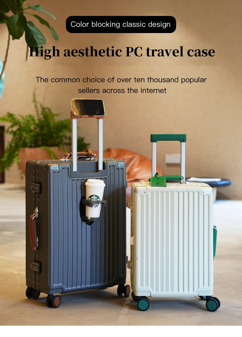 TH165 SUSHIMU Suitcase Travel Suitcase Men 20 24 26 Carry-On Luggage Women PC Aluminum Frame Trolley Case TSA password lock