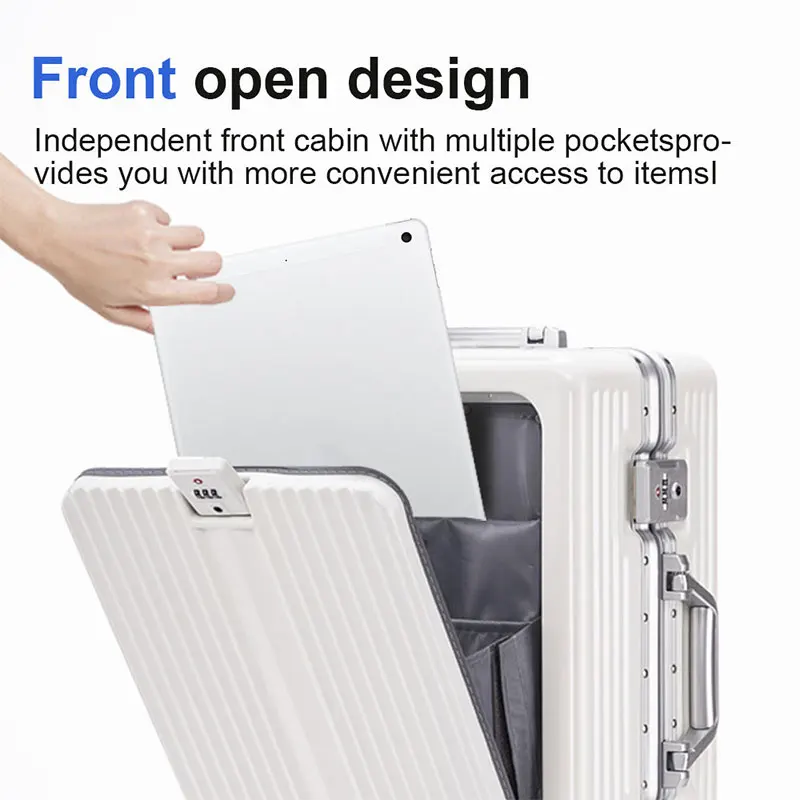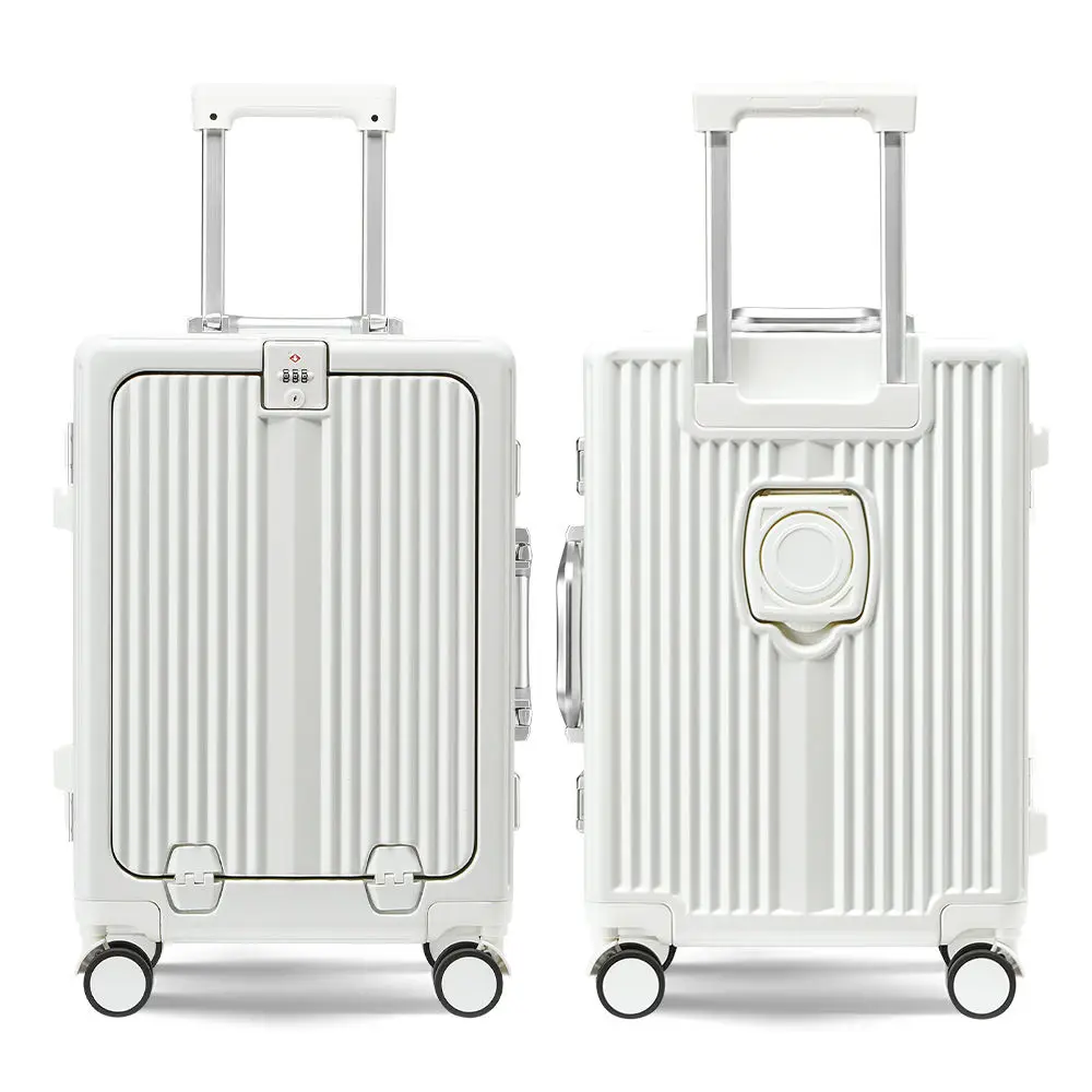 TH167 20 24 Inch Hot Selling TSA Lock Aluminum Frame Suitcases Luggage with USB Charging Port Cup and Phone Holder for Travel