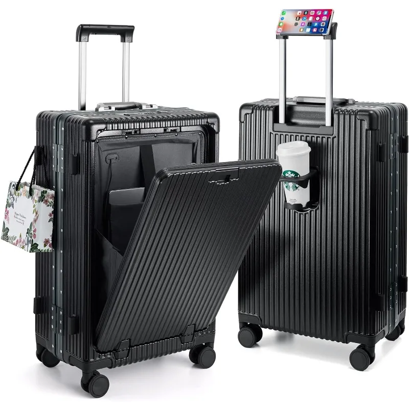 【Convenient Front Opening】The size of the 20 inch suitcase with front pocket is 19.7″x13.8″x9.1″,weight:9.5lb.The front pocket fit 15.6 inch laptops, iPads, and some documents,which can be quickly accessed through TSA lock,making it convenient to work anytime,anywhere.NOTE:Maybe this size is not suitable for carrying on the plane, please confirm the flight requirements in advance.