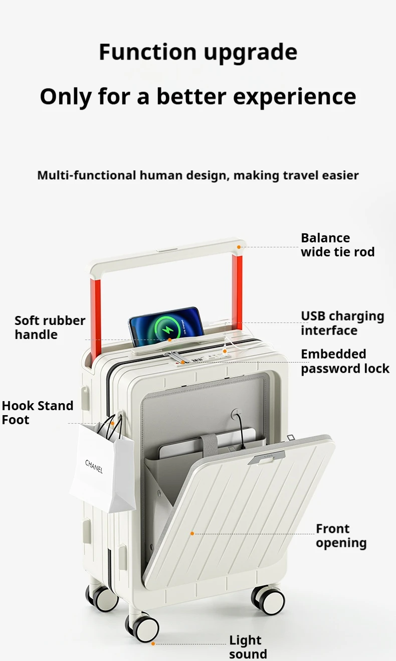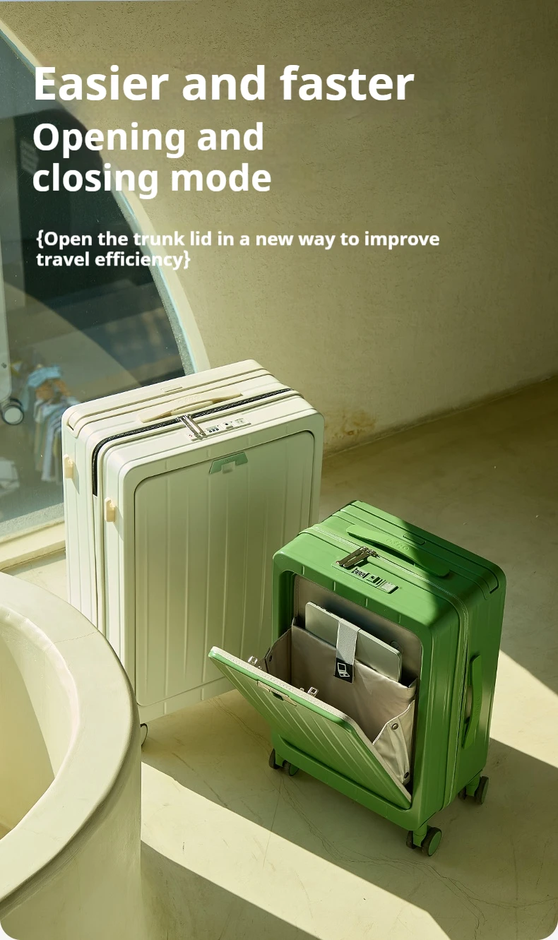 TH202 Front Open Luggage Suitcase 20/24 inch Wide Handle & Silent Wheels, Large Capacity for Business/Travel Luggage Suitcase