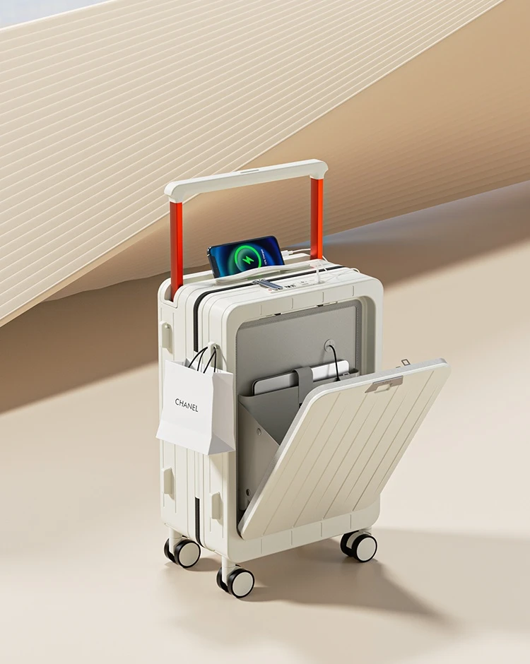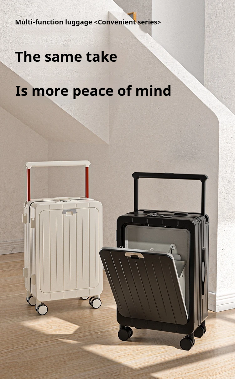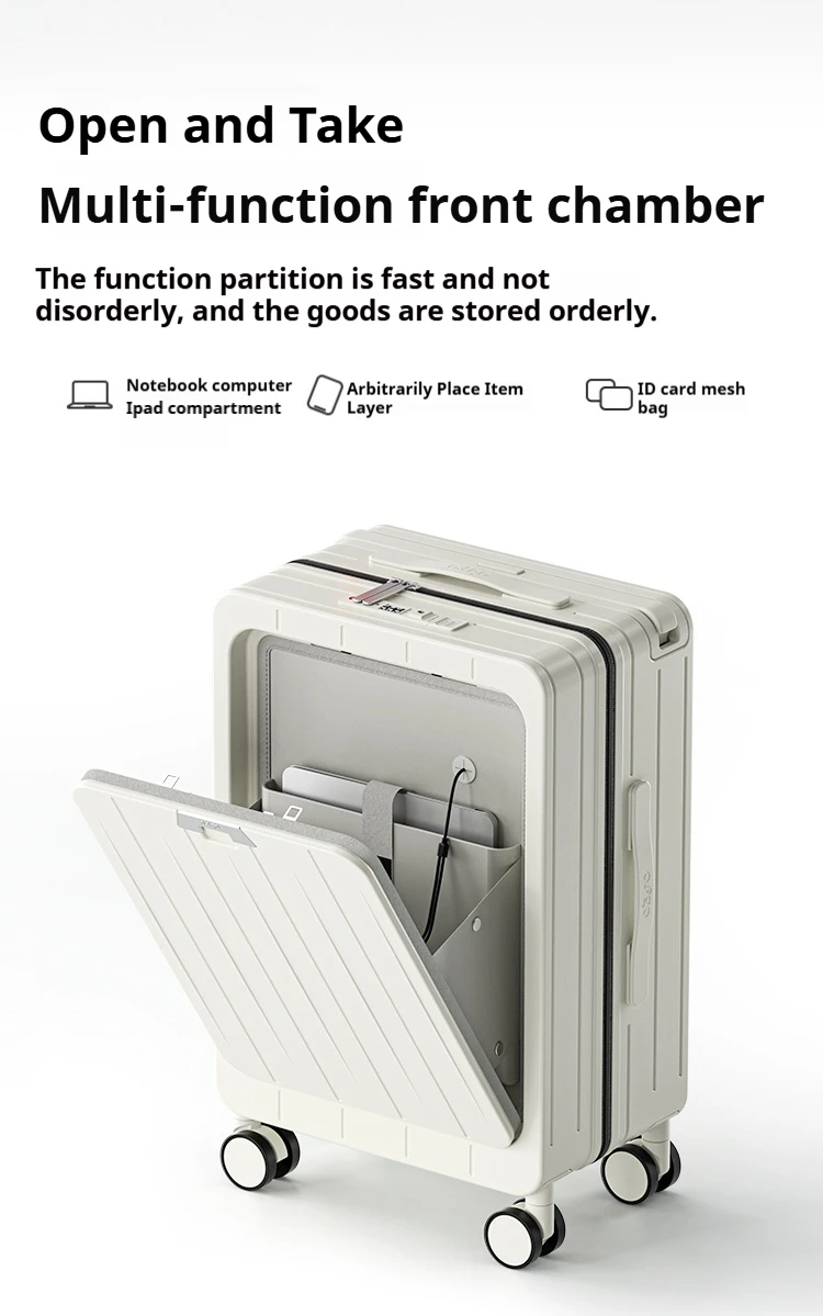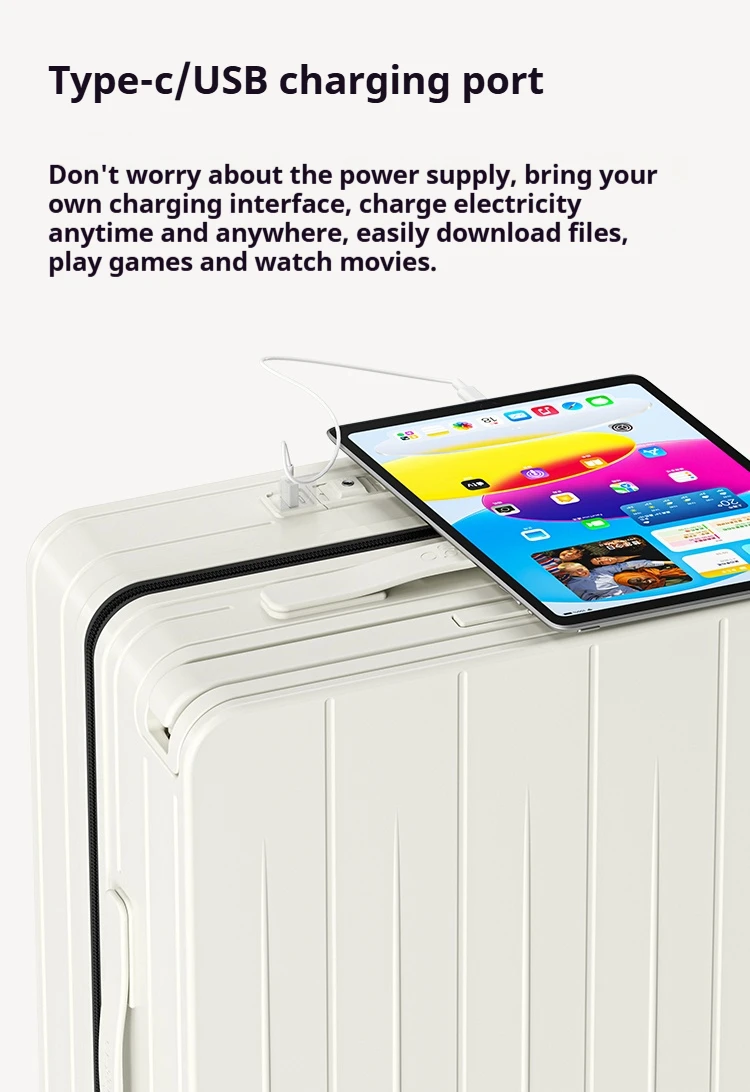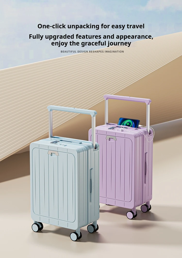 TH207 Front Opening Suitcase Widen Trolley Rolling High-Capacity Travel Luggage with Wheel and USB Charging Carry-on Boarding Suitcase