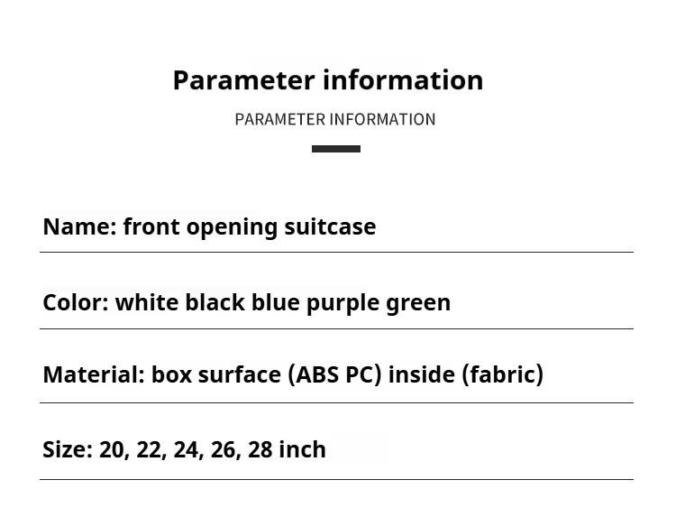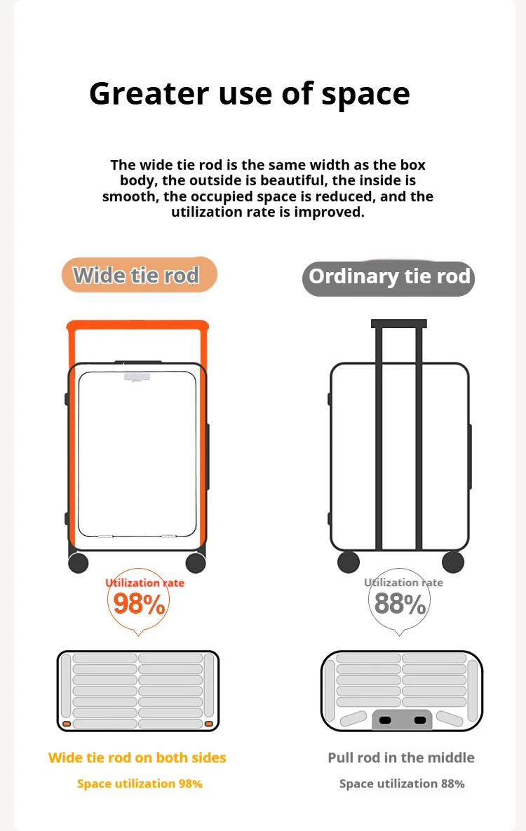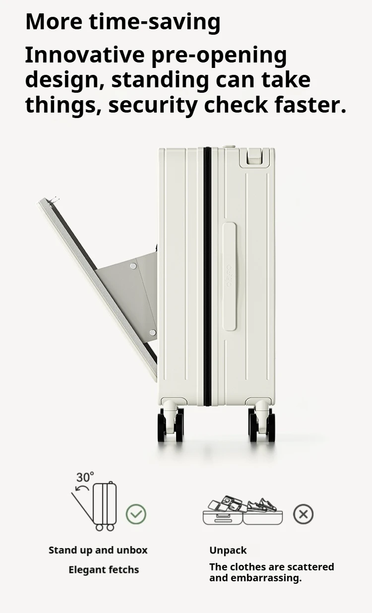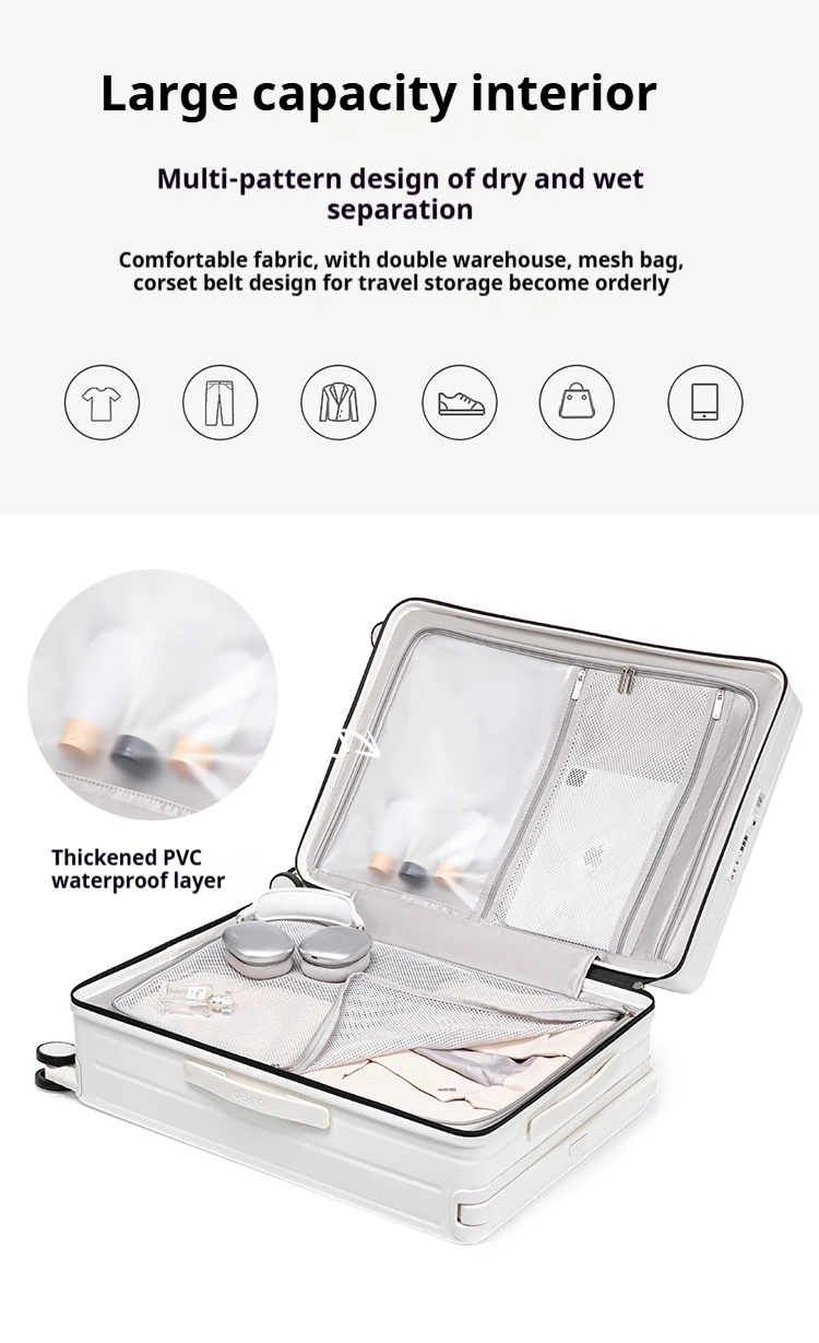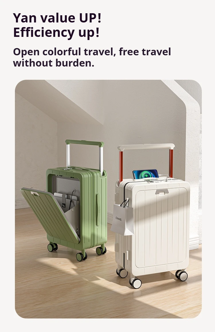 TH207 Front Opening Suitcase Widen Trolley Rolling High-Capacity Travel Luggage with Wheel and USB Charging Carry-on Boarding Suitcase