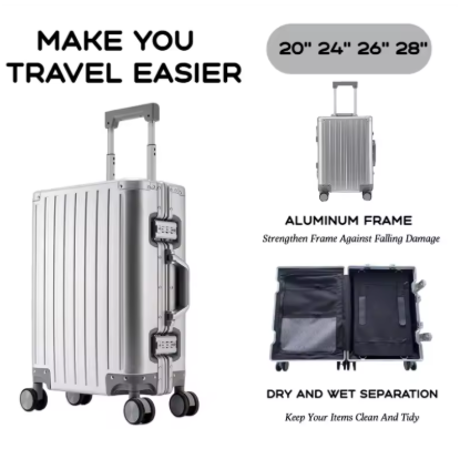 TH235 Large Capacity Durable Luggage for Men and Women, Aluminum, Carry-On, Boarding, Travel, New, 20, 24, 26, 28