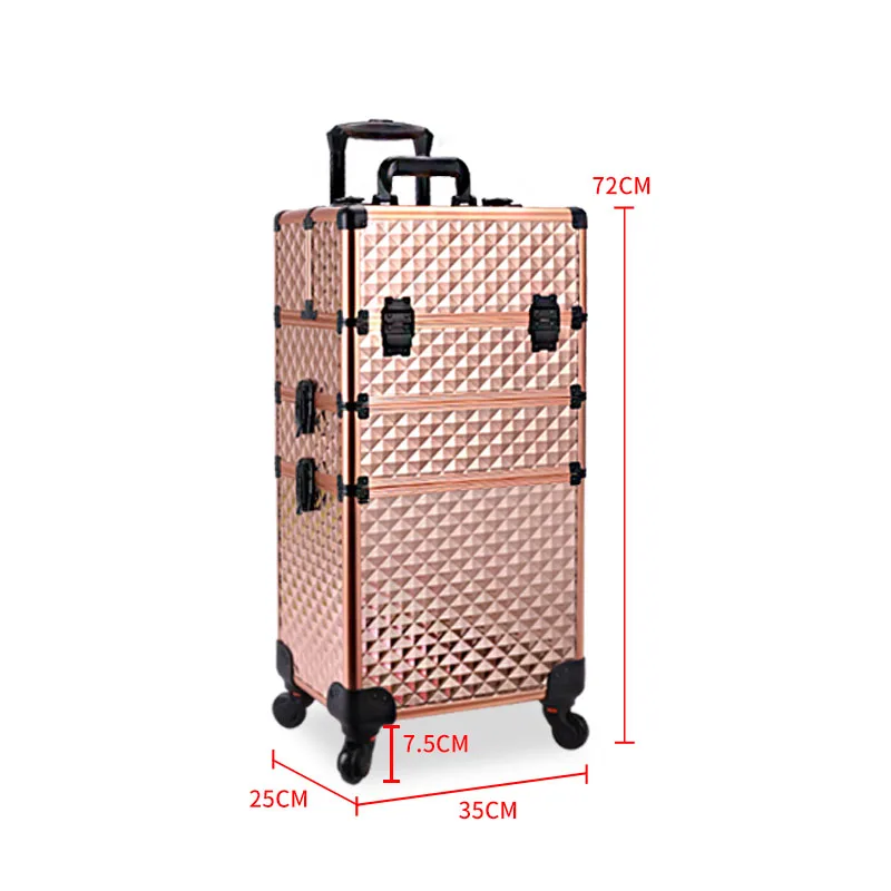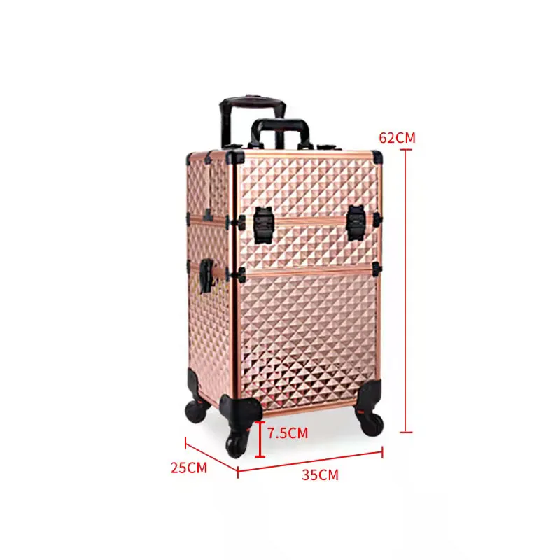 TH266 Professional Manicure Suitcases Travel Multilayer Large Capacity Makeup Valises Aluminium Luggage Trolley Tool Box Customized