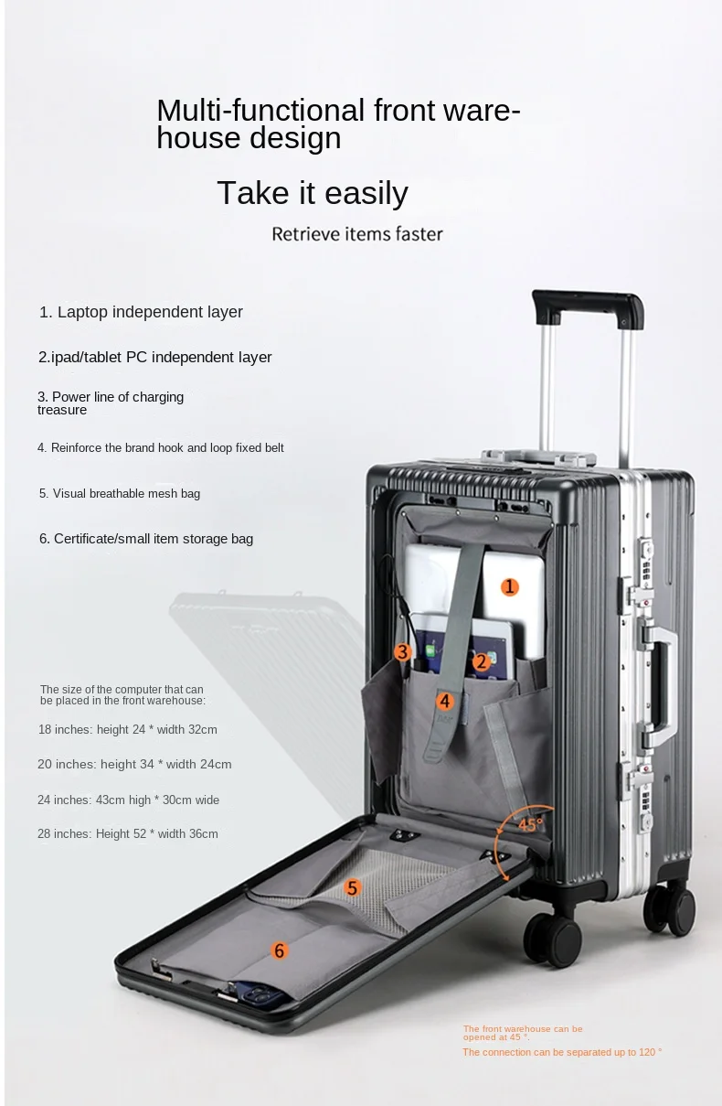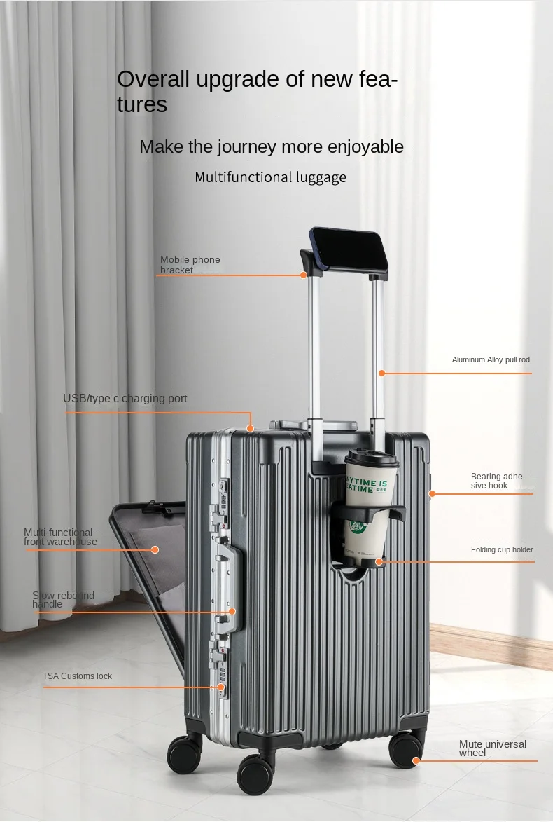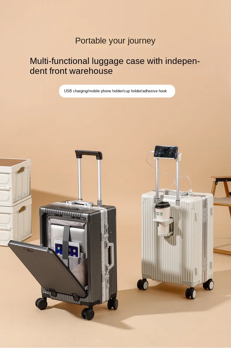 TH288 Travel Suitcase Front open cover Laptop Boarding Case 20 “24 Inch PC Aluminum Frame Trolley Case Universal Wheel Rolling Luggage