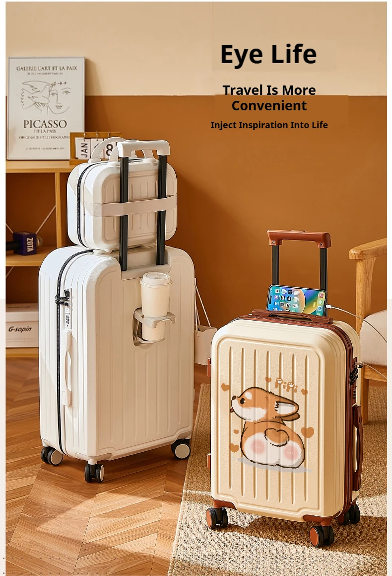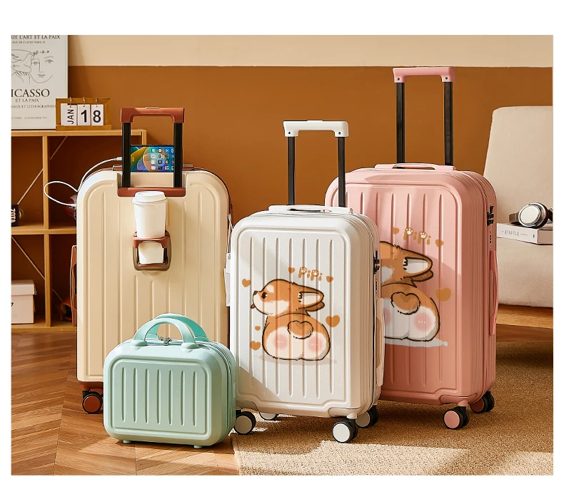 TH312 Kids Cute Cartoon Luggage 20 22 24 26 28 Inch ABS+PC Suitcase with Password Lock, Waterproof Scratch-Resistant Design for Travel