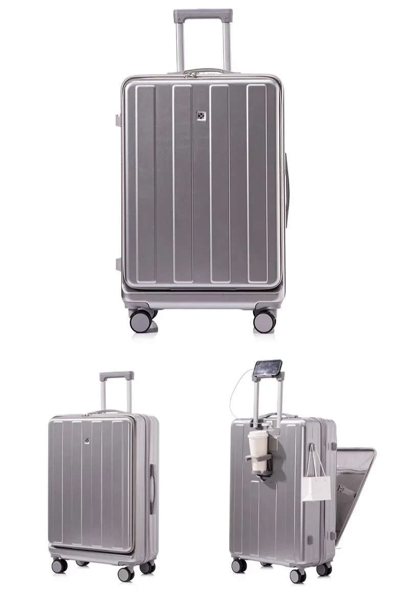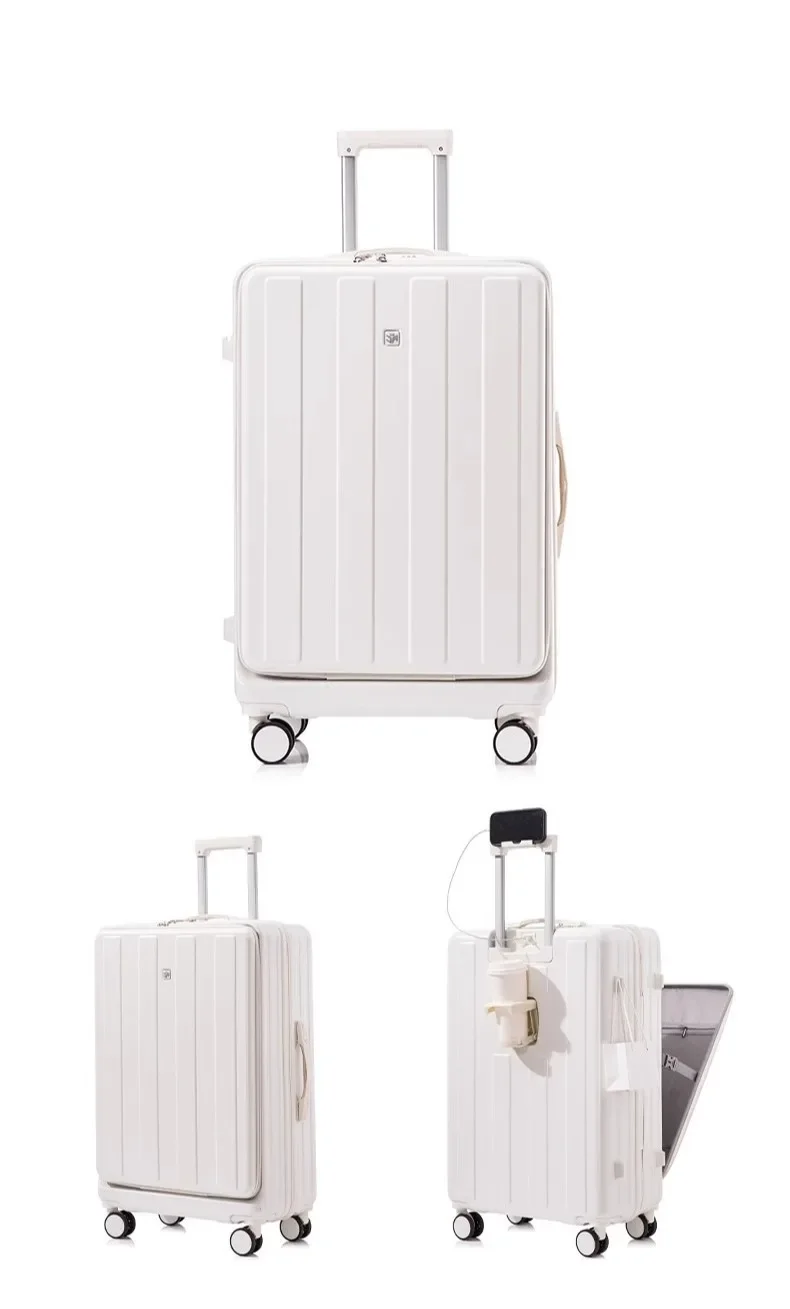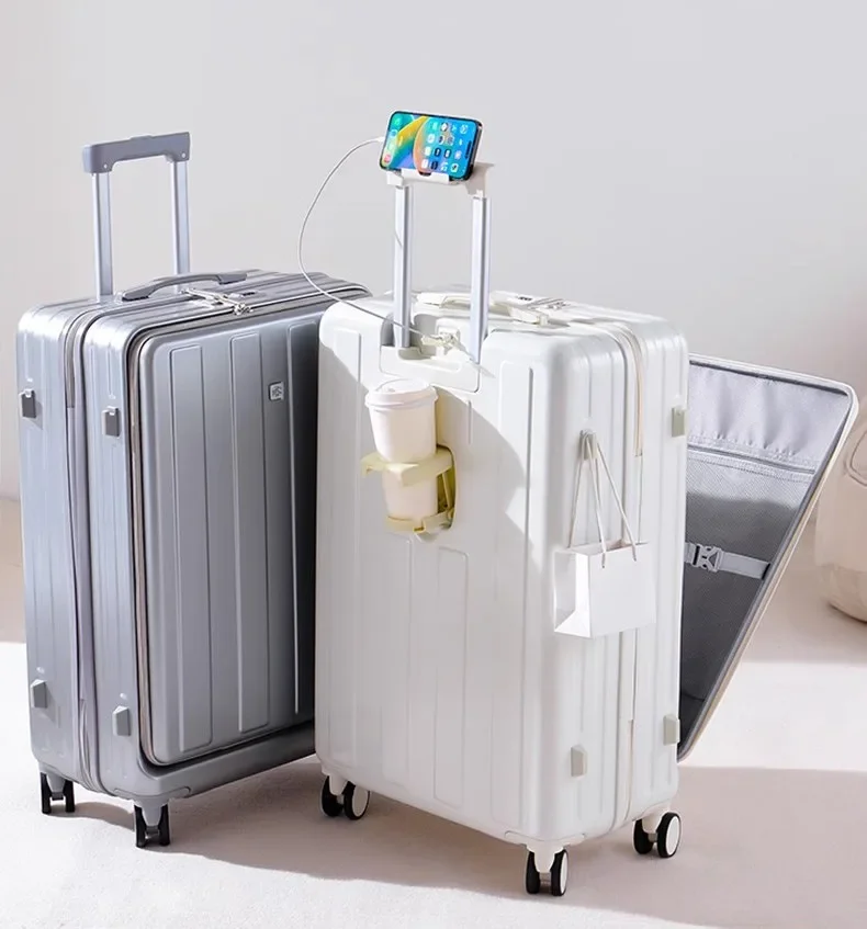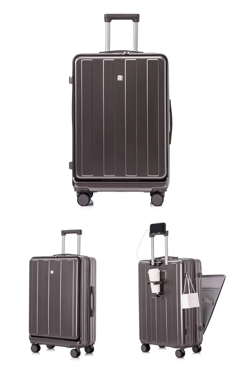 TH316 Large Capacity Multifunction Luggage Business Carry on Boarding USB Charging Cup Holder Front Opening Lid Trolley Suitcase